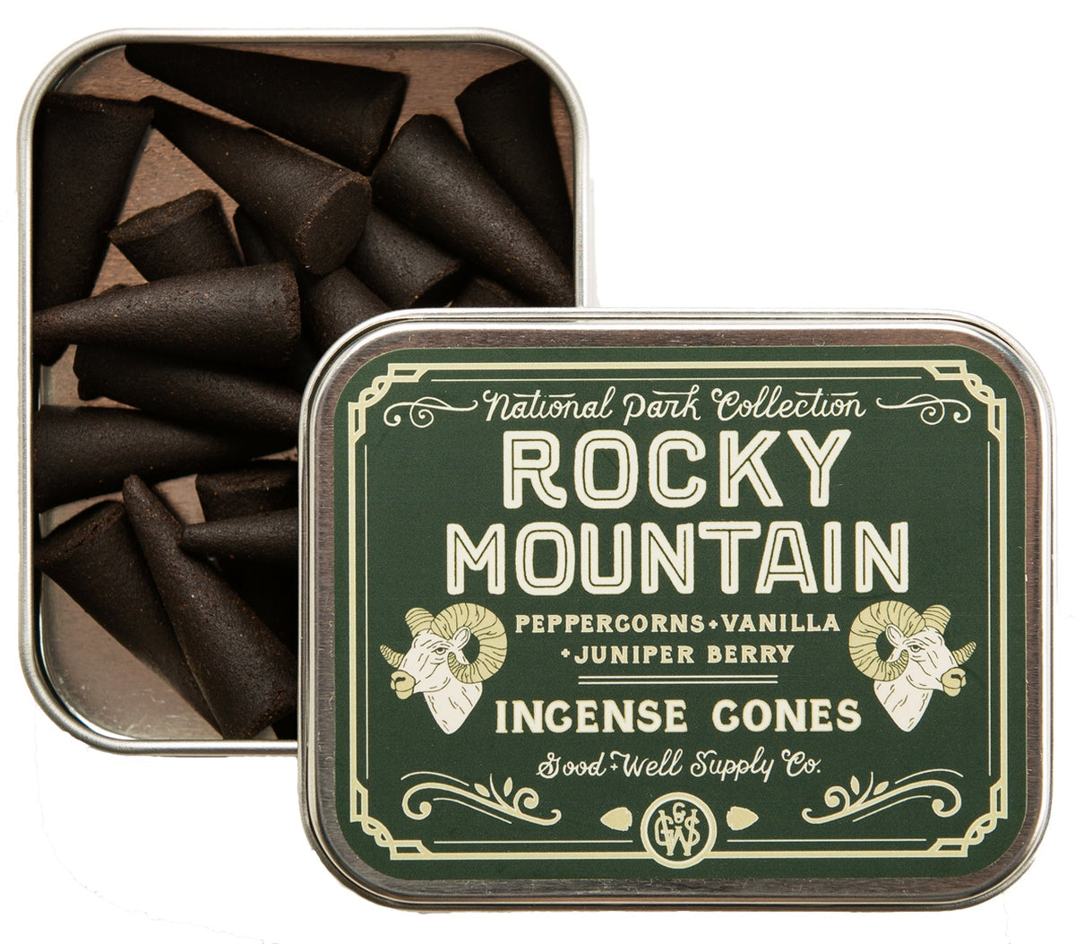 Our incense cones are hand-dipped and are housed in a sturdy aluminum tin; the lid can be used as a burning surface. Each cone will burn for 20-30 minutes with a scent longevity of 2-4 hours. Each tin contains 30 incense cones.