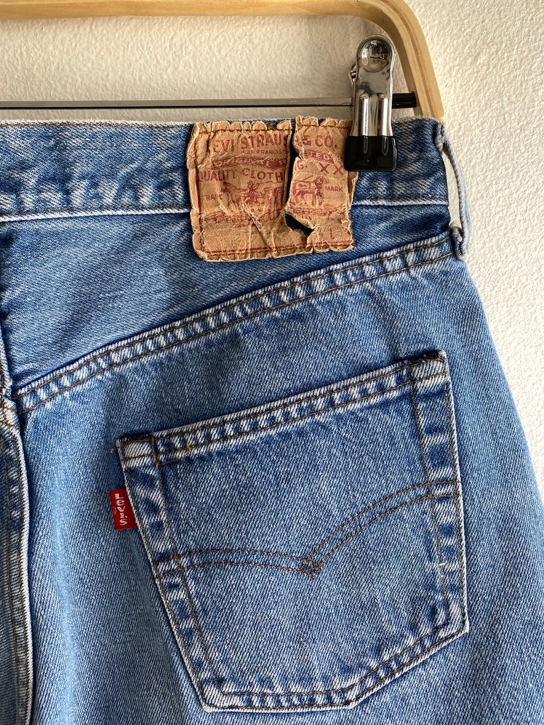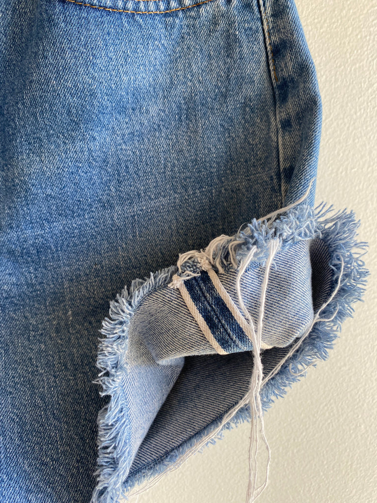 These aren’t your average shorts, these are a pair of (unfortunately) chopped redlines! My pain, your gain. Beautiful medium wash Levi’s 501s with all the standard fixings, spare the legs. Button-fly closure, copper rivets and stitching and bartacking at points of strain. Some fraying to note at the leg opening, but that’s expected on a pair of cut offs! Ready to go.